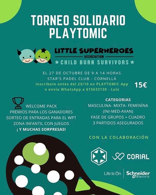 Patrocinado por Playtomic, Star´s Padel Club de Cornellá, Corial y la Fundación Schneider Electric, organizamos una mañana de prevención, deporte y juegos. Más de 80 participantes, y con la intervención especial de Guille Casal en la cancha de demostración, donde todos los jugadores que quisieron esperaron su turno para jugar con él. Especial agradecimientos a nuestro Coordinador de Eventos en España Luis Eduardo Escobar.
